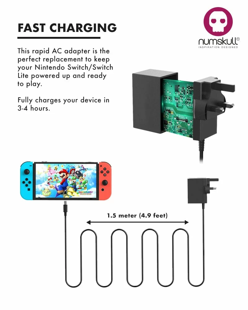 Need a spare mains adapter for your Nintendo Switch console (or any other USB C phone or device), or just want an extra one to keep in another room or in your bag? This handy UK compatible plug will help you fast-charge your beloved console anywhere with a socket!