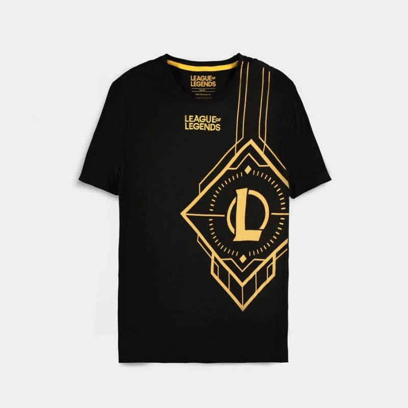 Represent the world of diverse champions with this official League of Legends t-shirt, featuring the iconic title and sleek logo design.