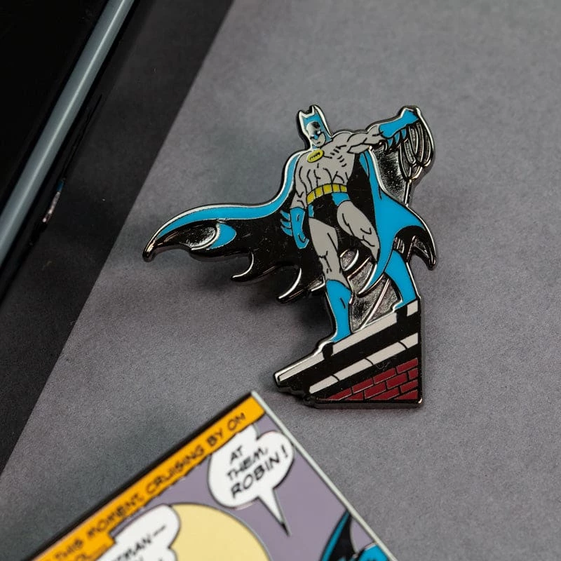 Watch out Gotham! Looks like Batman is back in business with his trusted sidekick, Robin. Swooping into action on his iconic Batmobile, this set of premium enamel pins are sure to make you feel like a true hero. Attach it to your coat, bag or accessories, or simply collect as a keepsake.